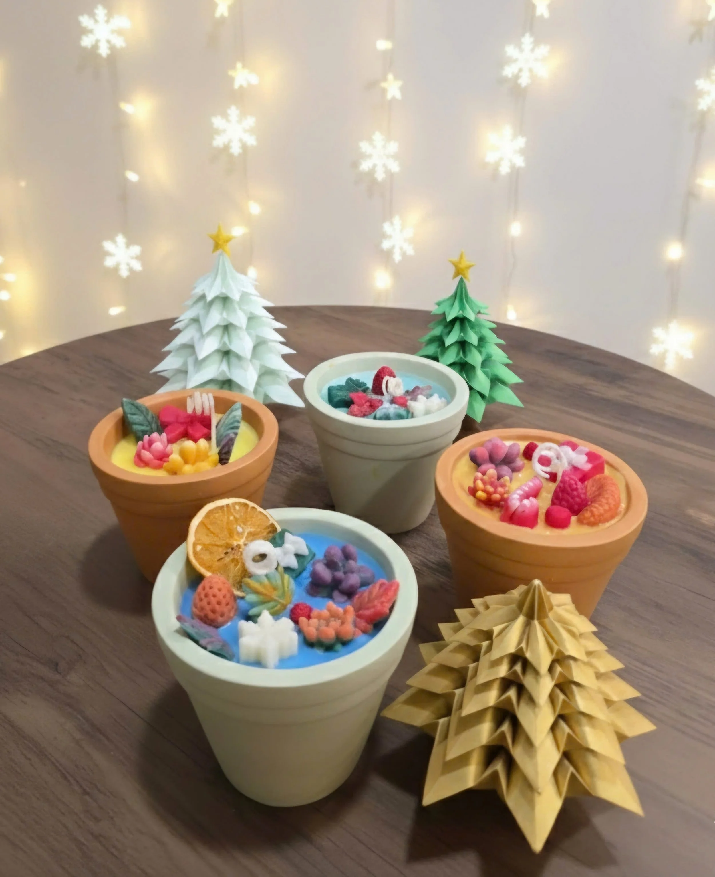 Step into a world of festive magic and create your own stunning Christmas Plant Pot Candle — a beautiful blend of winter colours, sweet holiday toppings, and cozy candlelight.